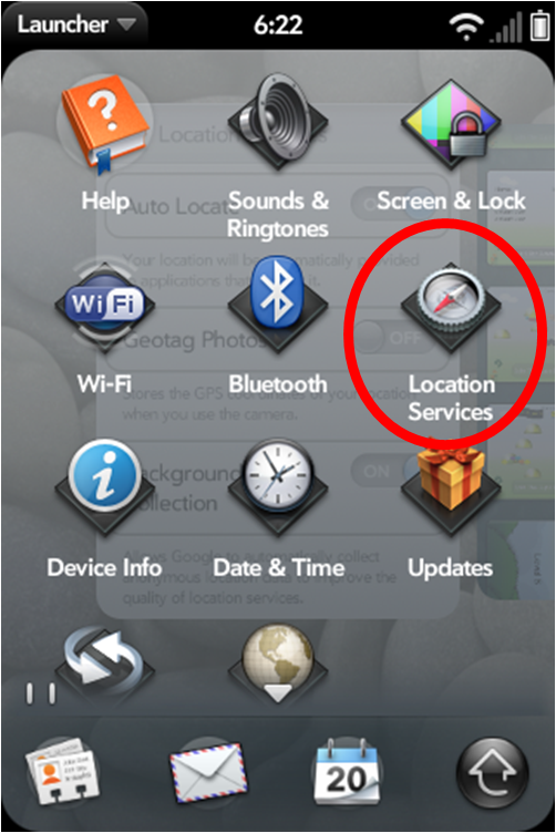 - GPS lock up.... Occasionally the collection of location based utilities on the webOS™ device can hang. This has become more infrequent with newer versions of both Send My Location for webOS and new versions of webOS™ itself. If Send My Location for webOS fails to return your location after following the steps below, often a reset of the device will clear things up. Reset the device by holding the power button down, after a few seconds several buttons will appear on the bottom of the screen. Tap the red "Power" button and then "Restart".